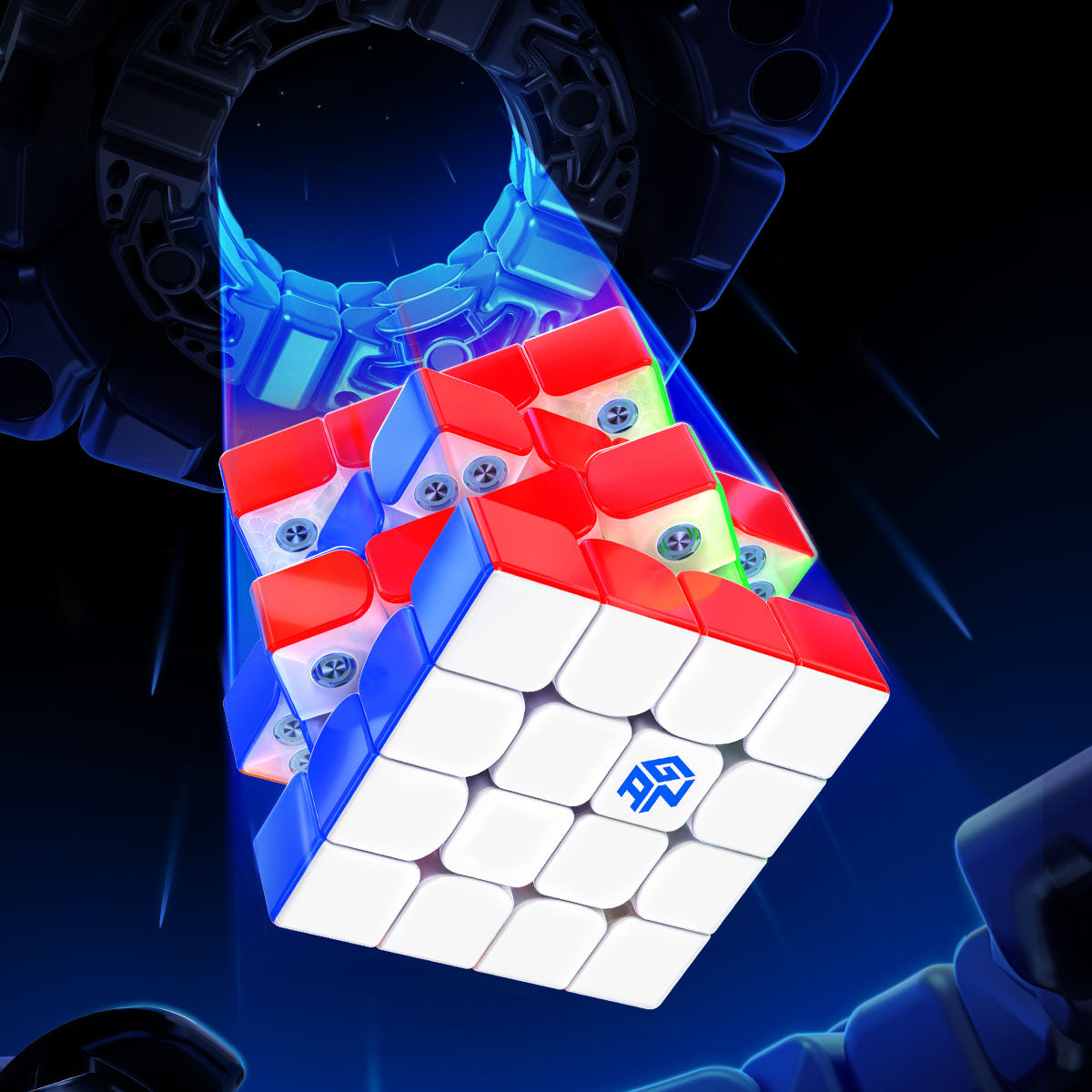The GAN Elastic System (GES) uses two repulsion magnetic rings to replace traditional springs. This innovation significantly reduces friction and noise, delivering a smoother and quieter turning experience. It sets a new standard in speed cube technology.